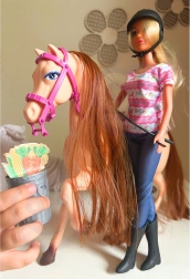 La poupée et le cheval ont de longs cheveux épais, offrant des possibilités infinies pour la création de coiffures et de styles.