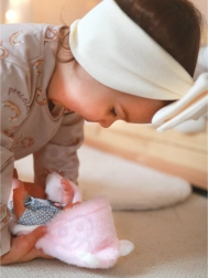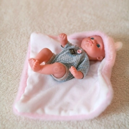 La poupée est livrée avec une couverture rose qui peut se transformer en tente, en porte-bébé ou simplement servir de couverture idéale pour les jours plus frais. La couverture est ornée de petites oreilles, rendant la poupée encore plus mignonne et unique.