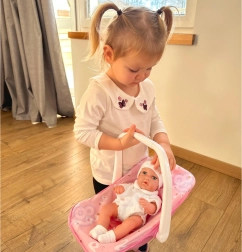 Jouer avec la poupée et le porte-bébé développe la créativité, l’empathie et le sens des responsabilités chez les enfants grâce à la simulation du monde réel.