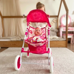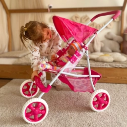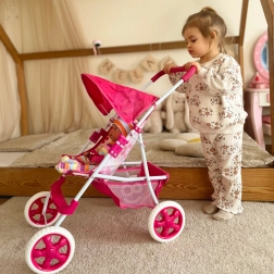 Les roues souples ne grincent pas et ne rayent pas le sol. Le panier pratique accueille les petits objets et accessoires de la poupée.