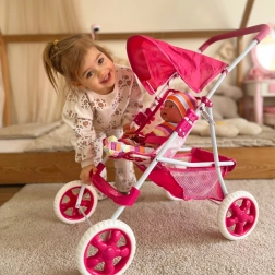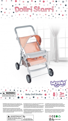 La poussette pour poupées WOOPIE Royalstructure légère et stable, sa capote pliable, sa poignée en mousse souple et ses roues silencieuses en mousse. Elle offre des ceintures pour un transport sécurisé, un repose-pieds et un panier pratique pour les petits objets. Elle se plie facilement pour gagner de la place et est idéale pour jouer à la maison comme en promenade.