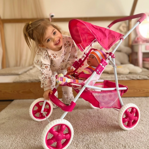 Des détails bien pensés tels que les ceintures de sécurité, le repose-pieds et le panier spacieux pour les accessoires font de cette poussette un complément pratique pour le jeu quotidien. Après le jeu, pliez-la tout simplement et rangez-la. La housse textile amovible peut être retirée pour un entretien facile.