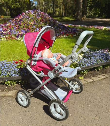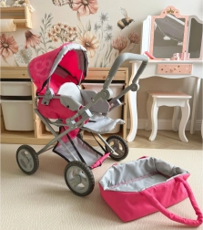 - Poussette pour poupées 3‑en‑1 (landau, sport, couffin/sac)