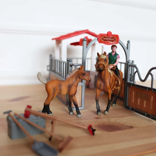 - Set de 18 pièces avec accessoires complets pour jouer à l’écurie.