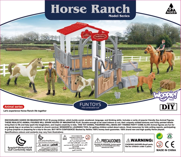 Woopie écurie et enclos pour chevaux : set de 18 pièces avec 2 chevaux, une cavalière et des accessoires. Finition détaillée et résistante. Stimule la créativité des enfants dès 3 ans.