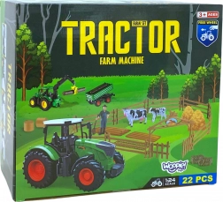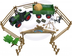 Le set comprend un tracteur, des figurines d’animaux et de fermier, ainsi que d’autres accessoires agricoles, qui créent une atmosphère de ferme réaliste.