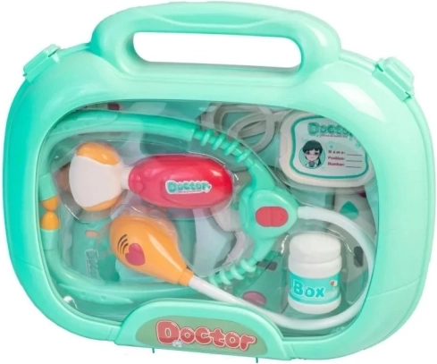 Le tout est rangé dans une mallette pratique avec poignée, garantissant un transport facile. L’enfant peut développer son imagination et jouer au docteur ou au patient !