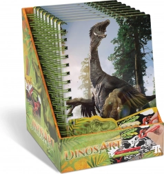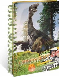 - 12 planches de coloriage en velours, 5 mini feutres, instructions, pages informatives sur les dinosaures