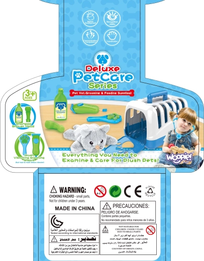 Le kit de petit vétérinaire de la marque WOOPIE est idéal pour les enfants dès 3 ans qui aiment les animaux et les jeux de rôle. Il contient tout le nécessaire pour s’occuper du chiot en peluche – de la brosse au shampoing – et permet d’imiter de vrais soins aux animaux.