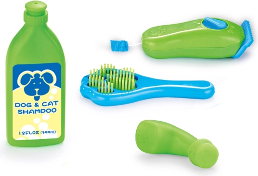 Brosse, shampoing, distributeur et tondeuse stimulent le jeu de rôle créatif et apprennent les bases de l’hygiène et des soins aux animaux.