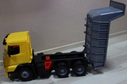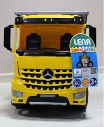 Ce camion-benne pour enfants Mercedes Giants Dump Truck offre un divertissement incroyable pour les enfants. Le modèle AROCS est un tri-essieux au design réaliste, avec cabine jaune, châssis noir et remorque argentée.