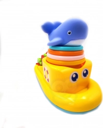 bateau flottant, moulin rotatif, baleine qui couine, gobelets à trous pour transvaser