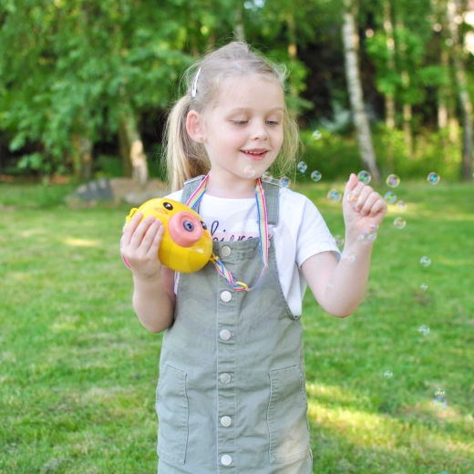 Adorable petite locomotive à bulles en forme de poussin de la marque WOOPIE, transformant chaque après-midi au jardin en une mer de divertissement. Elle émet plein de bulles à haute fréquence, que... Voir plus