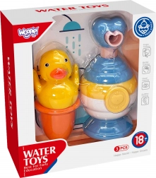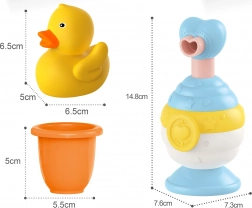 Le set de jouets de bain de la marque Woopie transforme le bain quotidien en une véritable aventure ! Il comprend un caneton, un distributeur de savon et un gobelet coloré. Le distributeur de savon transforme le savon en une fine mousse pour s’amuser pendant le lavage.