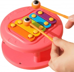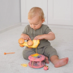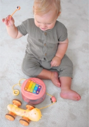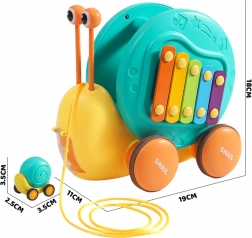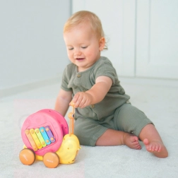 Avec l’escargot WOOPIE, les enfants découvrent le monde de la musique, du mouvement et de la relation cause-conséquence. Ils peuvent taper sur les touches colorées du xylophone avec les yeux–mailloches amovibles, tirer l’escargot avec une ficelle robuste ou le pousser et observer son départ. Des couleurs vives et un design ludique stimulent la perception visuelle et offrent de longues minutes de jeu créatif.