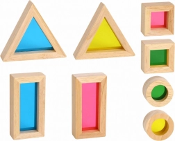 Grâce aux inserts colorés transparents, les blocs fusionnent leurs couleurs lorsqu'ils sont superposés, apprenant ainsi aux enfants à reconnaître et combiner les couleurs. Empiler et construire avec ces blocs encourage le développement de compétences telles que la créativité et l'imagination.