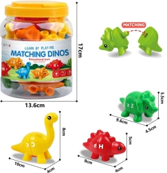 Ce jouet éducatif est conçu pour les enfants à partir de 3 ans et contient 13 pièces de dinosaures à assembler selon les lettres et les couleurs. Le jouet divertit mais enseigne également l'alphabet aux enfants et développe leurs compétences.