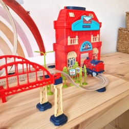 La locomotive avec effets sonores ajoute l’atmosphère d’un vrai chemin de fer. Nécessite des piles AAA (non incluses).