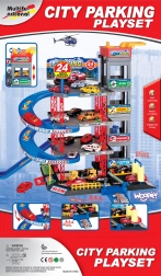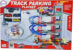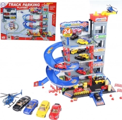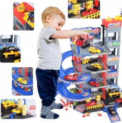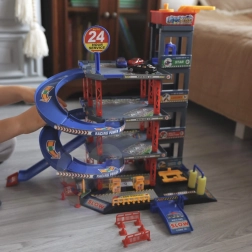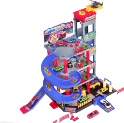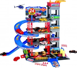 Dans la boîte, vous trouverez tout pour jouer tout de suite : 4 petites voitures métalliques, un hélicoptère, des panneaux de signalisation, des cônes, des éléments de rampe, un ascenseur et des autocollants pour créer un environnement réaliste. La structure en plastique résistant est légère, stable et adaptée à un usage quotidien.