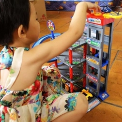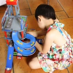 L’ascenseur manuel transporte les véhicules vers les étages supérieurs, tandis que le lave-auto et la pompe à carburant apportent du réalisme au jeu. Les enfants peuvent facilement inventer des scénarios de service complets.