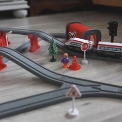 La locomotive et les accessoires présentent un aspect réaliste au design moderne, offrant aux enfants du plaisir tout en leur inculquant les bases de la signalisation routière.