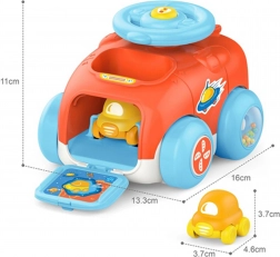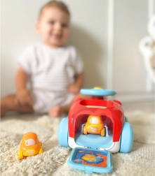 L'ensemble comprend 2 petites voitures qui peuvent être placées dans la grande voiture et propulsées grâce à la catapulte. Les enfants peuvent ainsi essayer différentes options et scénarios de jeu.