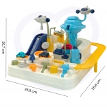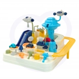 La piste interactive au style de base spatiale transforme chaque jour en mission palpitante. Les enfants déclenchent manuellement les mécanismes, actionnent les aiguillages et envoient les véhicules en orbite grâce au lanceur. Grâce à sa construction robuste et à ses bords sûrs, le jouet est idéal pour un jeu quotidien et le développement des compétences.