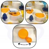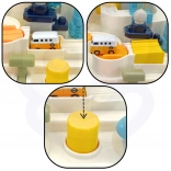 Leviers, boutons et molettes animent toute la piste. L’enfant exerce sa motricité fine, sa coordination et sa concentration de façon entièrement manuelle.