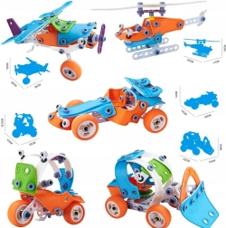 Ce coffret contient 118 éléments qui permettent de créer différents véhicules tels qu’un bulldozer, un hélicoptère, un avion ou un kart. Il aide à développer la créativité et les capacités manuelles des enfants, leur permettant de découvrir le monde de la construction et du design avec beaucoup de satisfaction et de joie.