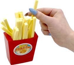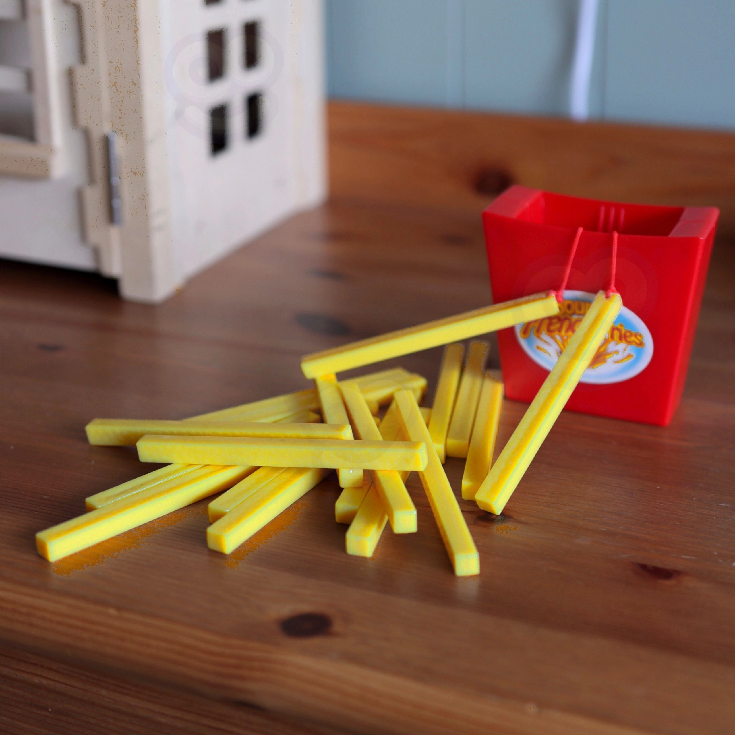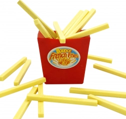Contenu de la boîte : gobelet à frites, set de frites (dont deux « mauvaises » frites qui déclenchent le saut de toutes les autres).