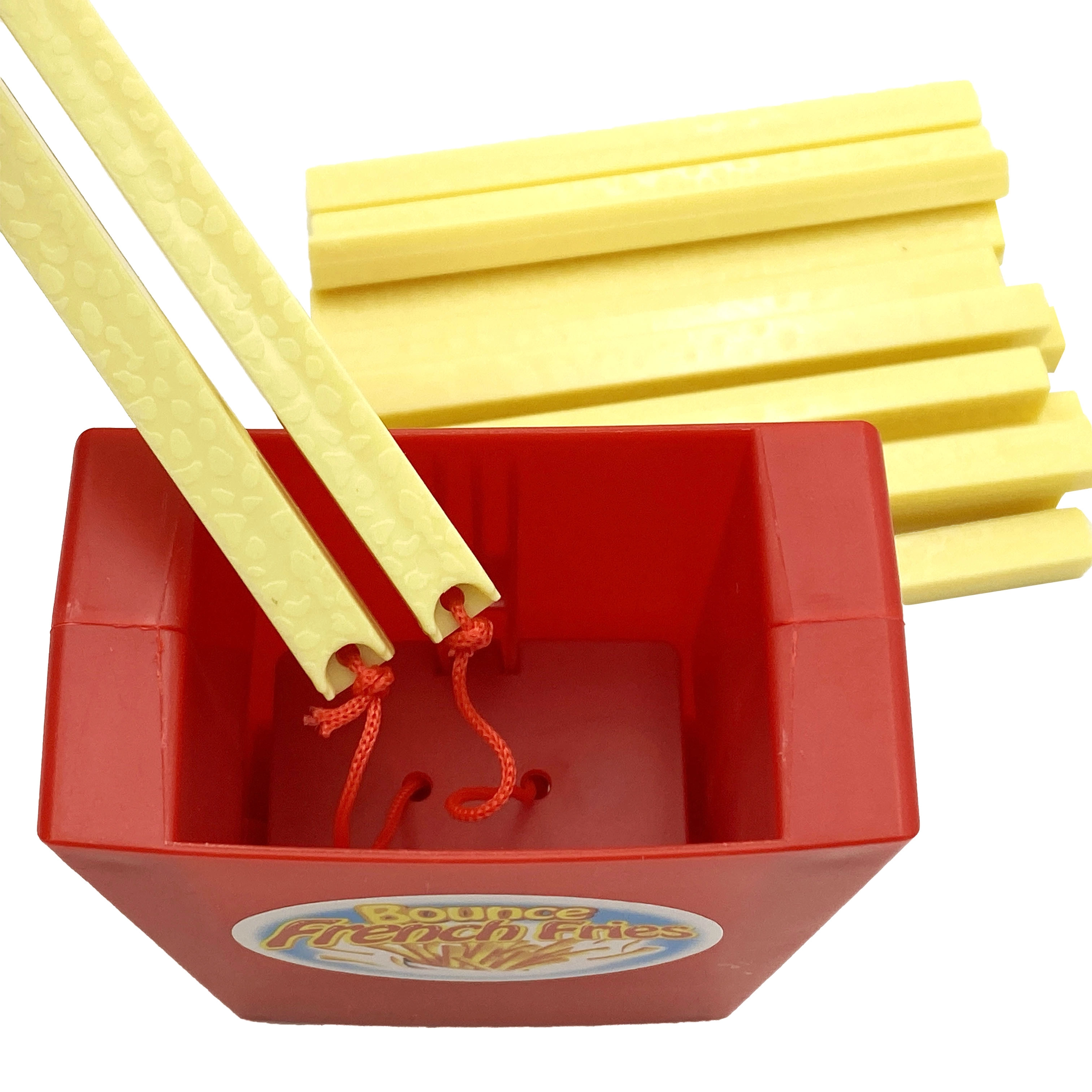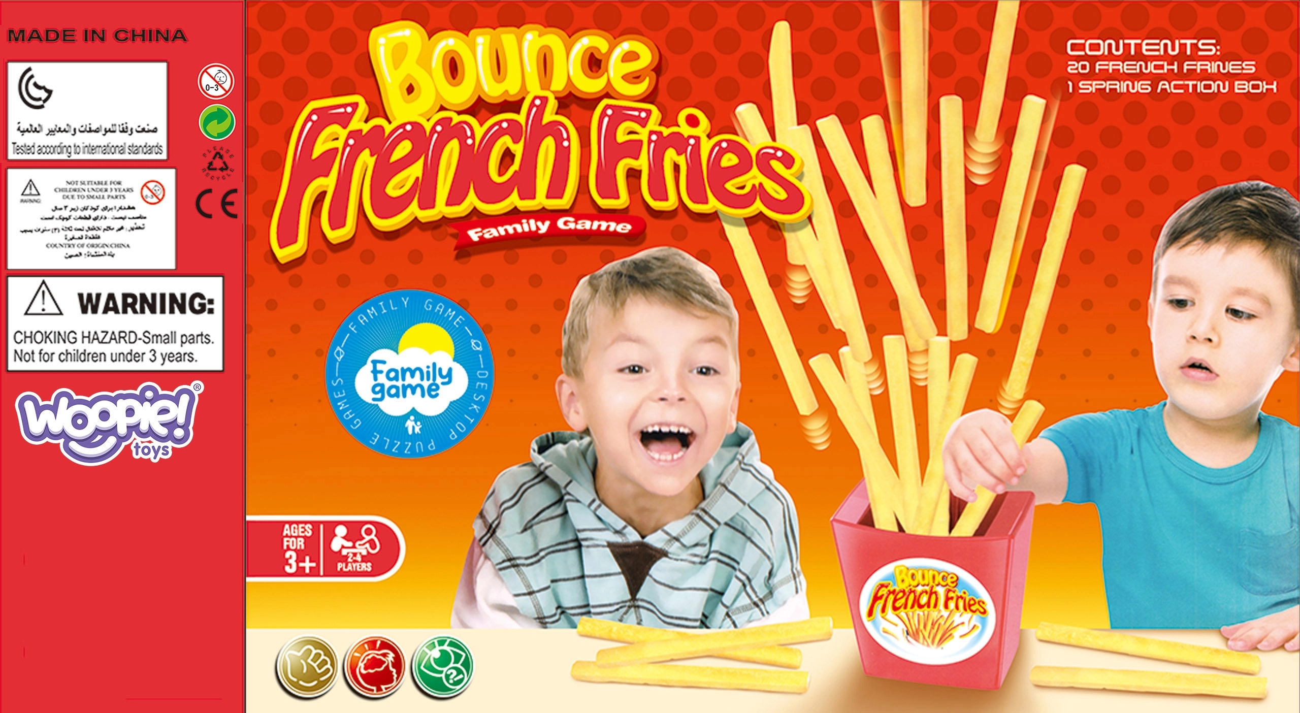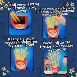 Le jeu Frites sautillantes de WOOPIE est un party game rapide et accrocheur pour enfants et adultes. Le but est de retirer délicatement des frites du gobelet sans provoquer leur « explosion ». Léger, peu encombrant et immédiatement compréhensible – idéal pour les soirées en famille ou entre amis.