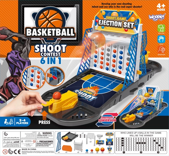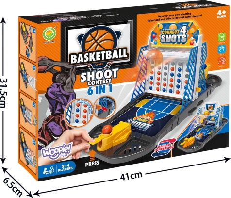 Le jeu de table amusant mini basket 6-en-1 de la marque WOOPIE est idéal pour des moments en famille et pour jouer avec des amis. Il permet jusqu’à 4 joueurs, propose deux modes de jeu – « 4 à la suite » et mini basket – et développe parfaitement la réactivité, la concentration et la communication des enfants dès 4 ans.