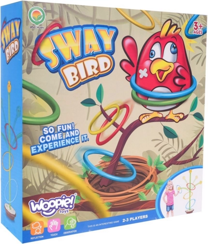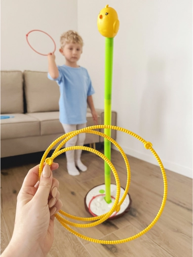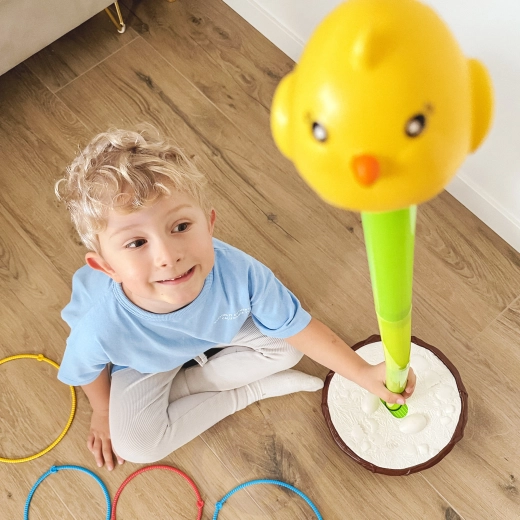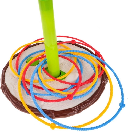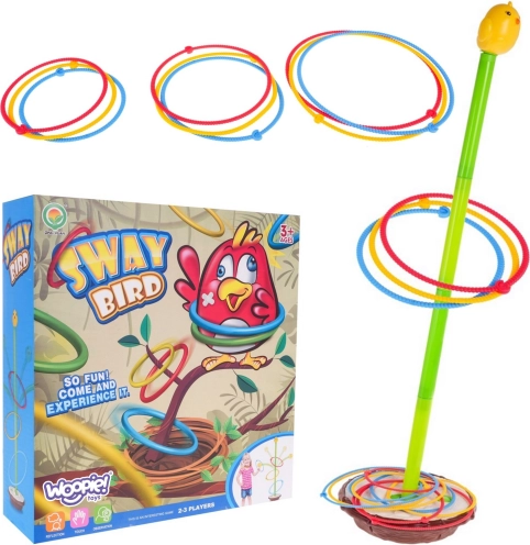 Montez le support coloré avec le mignon petit oiseau, choisissez la hauteur et que la partie commence ! Les joueurs lancent à tour de rôle et tentent de placer leurs anneaux sur la tige. Des règles simples, des manches rapides et un excellent entraînement des réflexes font de ce jeu un choix idéal pour jouer à l’intérieur comme à l’extérieur.