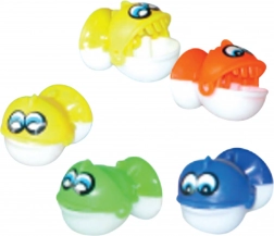 La surface de jeu tourne et les petits poissons apparaissent régulièrement la bouche ouverte – un timing précis entraîne les réflexes et la coordination.
