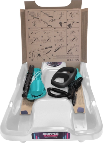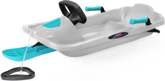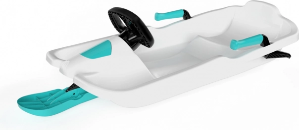 Skipper Titan est une luge moderne et dirigeable conçue pour une glisse rapide et sûre sur la neige. Sa structure robuste en plastique avec base monoskis offre une excellente stabilité et maniabilité, tandis que le volant ergonomique permet des virages fluides même en terrain changeant.
