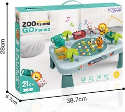 La table interactive verte WOOPIE est un excellent choix pour les enfants comme pour les adultes. Les couleurs vives attirent l’attention, les paniers latéraux stimulent l’esprit de compétition et les adorables animaux plaisent au regard. Le plateau mobile avec poissons augmente la difficulté et entraîne la coordination œil–main. Les effets sonores et les mélodies donnent du pep au jeu et maintiennent les enfants en action.