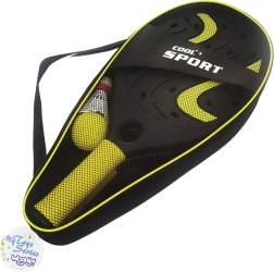- 2 raquettes, 1 balle en mousse, 1 panier, 1 pochette zippée