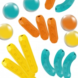 Cet ensemble contient tout le nécessaire pour un jeu de construction et d'imagination, y compris 12 boules, des bâtons longs et courts de différentes couleurs, des têtes de dinosaure et bien plus.
