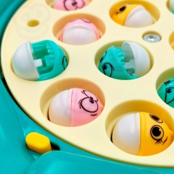 Miserez-vous sur la vitesse, la réactivité et la précision ? Le dinosaure vert cache un petit étang rotatif rempli de poissons colorés qui s’ouvrent et se ferment. Votre mission est d’en pêcher un maximum à l’aide de la canne avant la fin du tour – un défi amusant pour les petits comme pour les grands pêcheurs.