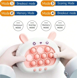 Amusant et interactif, le jeu POP IT Lapin apporte du plaisir aux enfants comme aux adultes. Il stimule l’esprit, les compétences manuelles, la coordination œil-main et aide à lutter contre le stress. Ce jouet propose quatre modes de jeu différents qui maintiennent chacun en haleine.