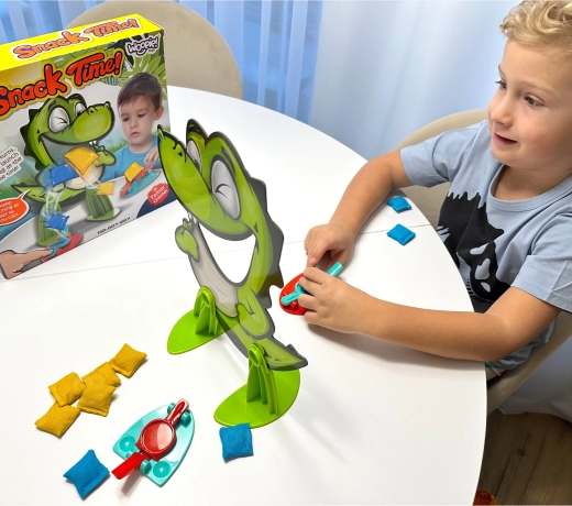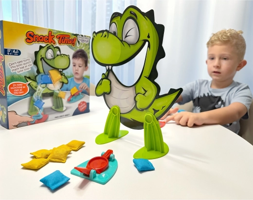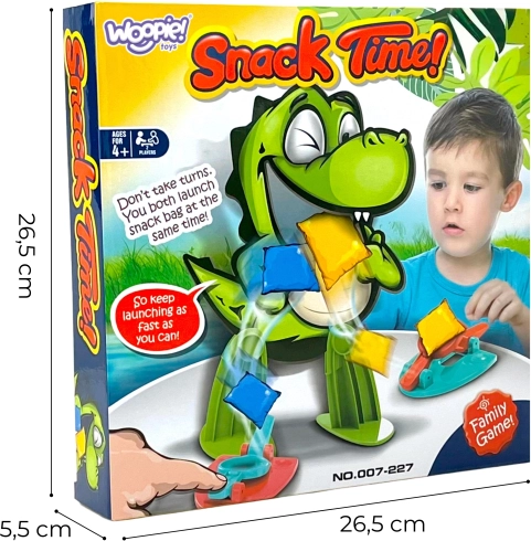 Donnez du pep à vos soirées familiales avec le jeu d’adresse Woopie Dinosaure affamé. Le dinosaure coloré devient la cible et deux joueurs s’affrontent en envoyant, à l’aide de lanceurs simples, des sacs souples dans sa gueule. Grâce à son rythme soutenu, le jeu convient aussi bien aux enfants dès 4 ans qu’aux adultes – vous comprendrez les règles en un instant.