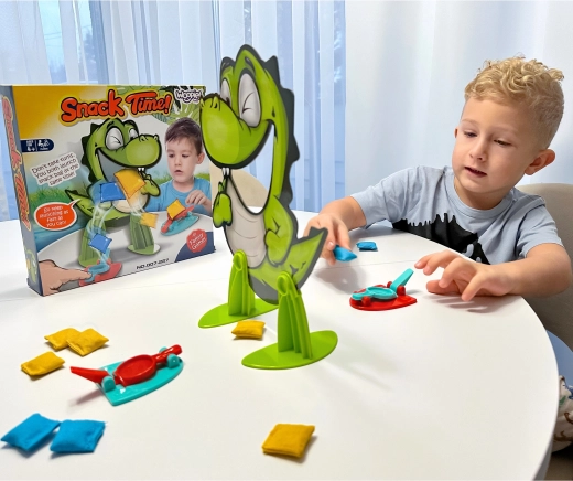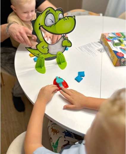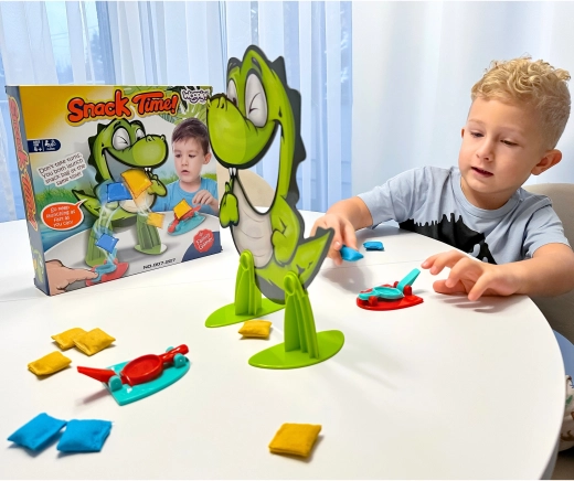 - Plaisir rapide pour 2 joueurs : duel pour savoir qui « nourrira » le dinosaure en premier.