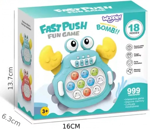 Le jouet électronique Pop It Crabe est un excellent moyen de développer l’esprit, l’habileté manuelle et la coordination chez les enfants. Grâce à son format compact, vous pouvez l’emporter partout. Le jouet est destiné aux enfants à partir de 3 ans et propose jusqu’à 999 niveaux, offrant beaucoup de divertissement même pour les adultes.