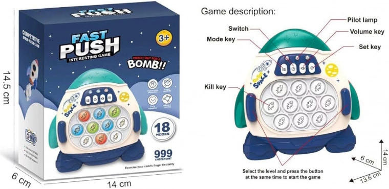 Le jeu électronique POP IT Fusée est conçu pour les enfants et les adultes qui cherchent un moyen amusant de se détendre. Ce jouet est compact et facile à transporter, vous pouvez donc l'avoir toujours à portée de main. Il aide à développer l'esprit, à améliorer les compétences manuelles et la coordination œil-main.