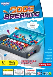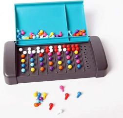 Le joueur – créateur du code – cache une combinaison de chevilles colorées, tandis que l’adversaire tente de la découvrir à l’aide d’estimations astucieuses et de pins indices. Des règles simples, des parties rapides et le rangement facile des pièces dans la boîte refermable font de ce jeu un choix idéal pour les voyages.