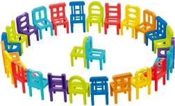 Permet de construire diverses structures à partir de chaises colorées et stimule la créativité.