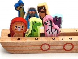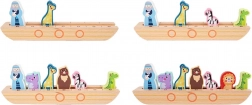 Le jeu Tooky Toy sur le thème de l’arche de Noé permet aux enfants d’assembler des figurines d’animaux en bois à partir de modèles issus du livret inclus. Chaque figurine a deux faces, l’une orientée vers la droite et l’autre vers la gauche, ce qui ajoute de la variété et de la complexité à l’apprentissage. La tâche du joueur est de placer correctement toutes les figurines sur le plateau selon le défi choisi, en utilisant la pensée logique pour déterminer la bonne position et l’orientation de chaque animal.