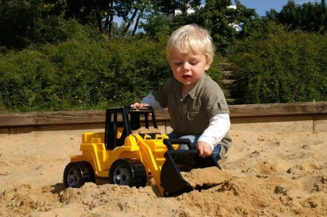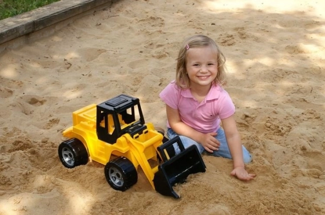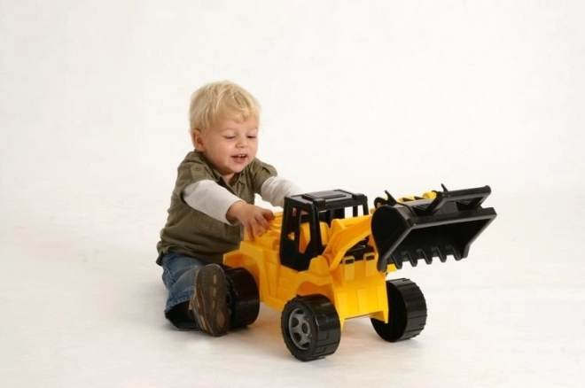 Chargeur pour enfant Lena en version noir et jaune, fabriqué en plastique de haute qualité conforme aux normes européennes. Équipé d'un bras mobile avec une pelle de chargement, offrant un grand plaisir pour les enfants.