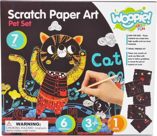 Découvrez la magie de la création avec le set WOOPIE ART&FUN – des images à gratter créatives pour les enfants dès 3 ans. À l’aide d’un stylet en bois, les enfants révèlent des couleurs cachées et créent des images colorées aux motifs d’animaux. L’emballage compact avec fermeture est idéal pour les voyages. Le set de 7 pièces développe la motricité fine, la créativité et l’imagination.