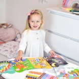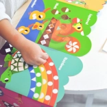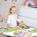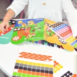 Grâce aux autocollants, les enfants exercent leur motricité fine, reconnaissent les formes et les couleurs, et apprennent également l'anglais.